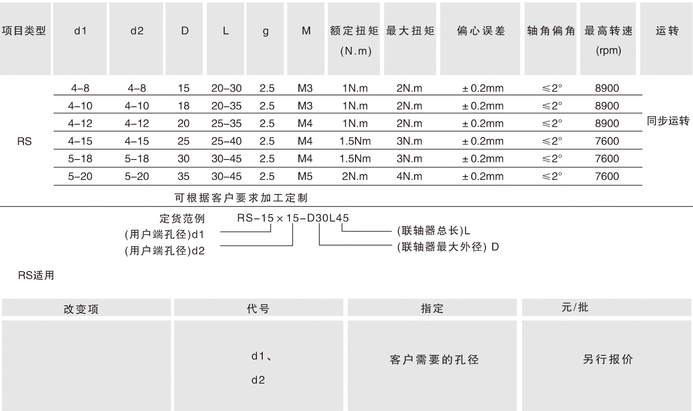 RS系列主体材料为:铝合金(特殊孔径和键槽均可按需求加工)