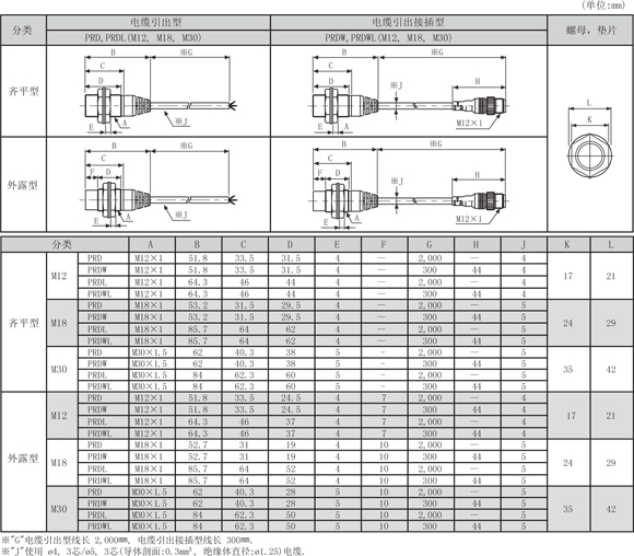 * 采用强化电缆:接近开关与电缆连接部位采用强化电缆,增加弯曲度与使用寿命(是一般型接近开关9倍以上)