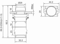4.型号举例:1常开+1常闭触点,红色带灯AC/DC 24V高位钮型号为:LA130-22A-11HD/R 23;