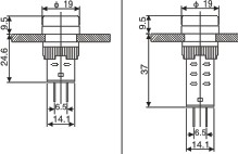 3、AD103-16C(S)为插脚接线方式,其中AD103-16C总长度约为46.5(不包括插脚);AD103-16CS为超短型,总长度约为34(不包括插脚)。
