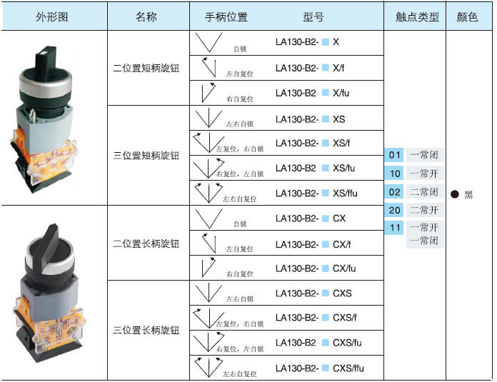 2..型号举例:1常开触点,短柄二位置旋钮:LA130-22B2-10X