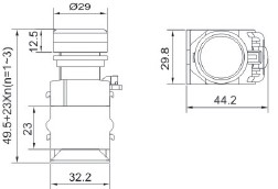 3.型号举例:1常开+1常闭触点,红色一般钮型号为:LA130-22D-11/R;