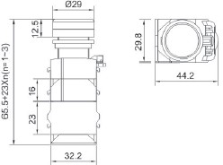 3.型号举例:1常开+1常闭触点,红色AC/DC24V一般带灯钮型号为:LA130-22D-11D/R 23;