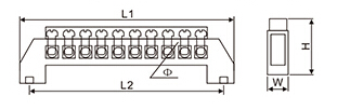 | 型号 | 铜件规格 | L1 全长 | L2 安装孔中心距 | H 高度 | W 宽度 | Ф孔径 | 压线螺钉 |