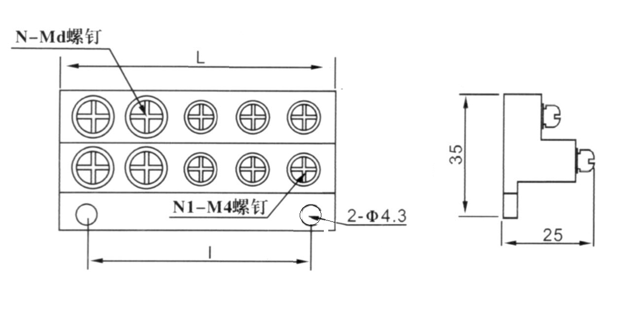 | 型号规格 | Md | 螺钉位数 | 外形尺寸(mm) | ||