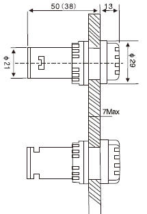 说明 1、在第1处“■”处填写颜色代码,在第2处“■”处填写电压等级代码 2、AD103-22E总长度约为63,AD103-22ES为超短型,总长度约为51。 3、因散热条件关系,超短型指示灯没有DC220V电压等级。 4、型号举例: 红色,AC DC24V信号灯:AD103-22E/R23 绿色,AC220V超短型信号灯:AD103-22ES/G31 |