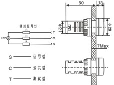 说明 1、在第1处“■”处填写颜色代码,在第2处“■”处填写电压等级代码 2、型号举例: 红色,AC DC24V测试信号灯:AD103-22D/TR23 绿色,AC220V测试信号灯:AD103-22D/TG31 |